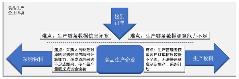 食品生产企业困境:库存合理化一直是食品生产企业的一大管理关键点,在供应链成本压力持续发酵、产品毛利逐渐摊薄的大背景下,企业急需构建生产链甚至产业链上下游信息流通渠道,结合产品需求、原料供给和产能配置,科学和敏捷地调整生产计划,提高产能利用率,减少库存积压,提升客户满意度,保障订单稳定到期兑现,从而实现具备高敏捷性和灵活性的生产协同。了从原料 采购到生产过程监控再到销售发货的全生产链“双向溯源”的食品追溯模式。食 品生产经营企业通过建立食品安全追溯体系︐客观、有效、真实地记录和保存 食品质量安全信息︐实现食品质量安全顺向可追踪、逆向可溯源、风险可管控︐ 发生质量安全问题时产品可召回、原因可查清、责任可追究︐切实落实质量安全。